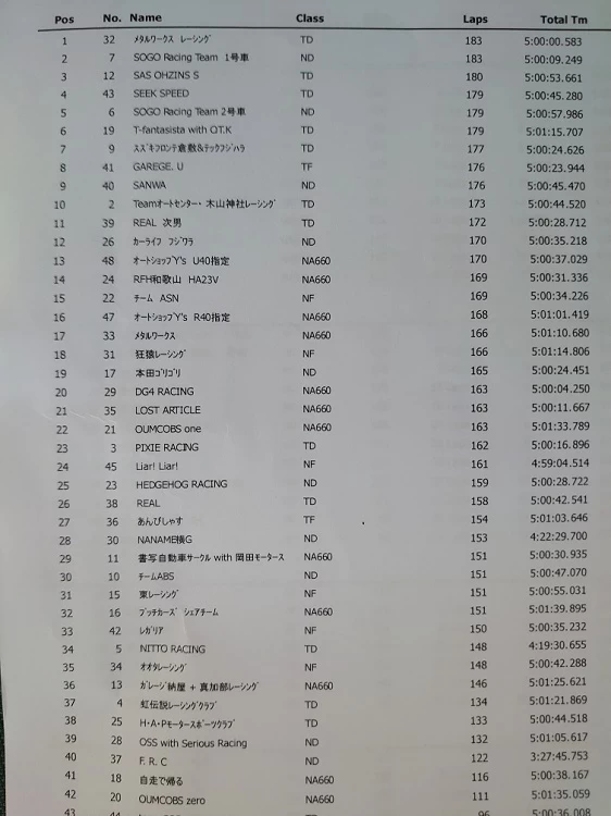 無事5時間を3人のドライバーで繋ぎ完走を果たし、結果は49台中 総合10位、クラス6位という結果でした。 来年以降もこの大会には参戦していく予定なので、応援よろしくお願い致します。